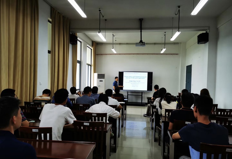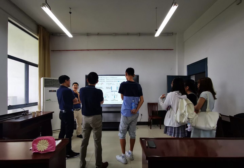 向教授以“Property analysis and simulation package for materials (PASP) and its applications”为题,系统介绍了其课题组研发的材料性质分析和模拟包(PASP)理论和方法,详实讲述了PASP在预测铁电体、分析薄膜中铁电体增强的原因、Kitaev作用的发现、预测钙钛矿氧化物室温亚铁磁体及电场调控二维材料的拓扑磁性等方面的新奇应用。向教授报告内容丰富,把深厚理论讲的浅显易懂,激起我院师生的浓厚兴趣。报告后,向教授与我院师生就研究生的联合培养、科研合作、课题联合申报等方面的工作进行了深刻交流和探讨。