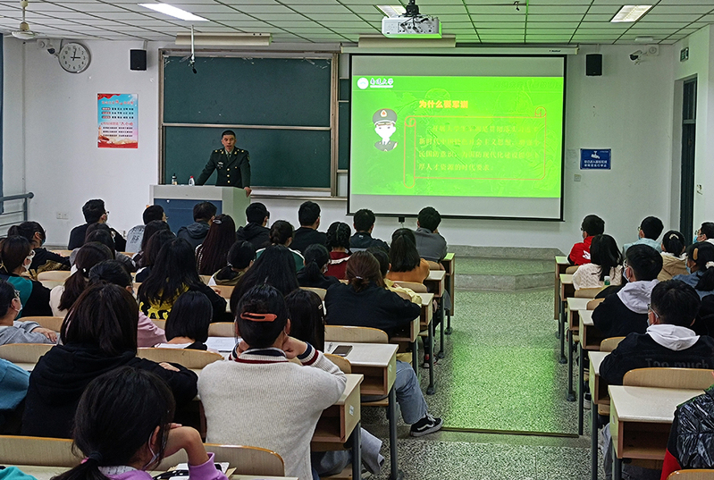 人武部张青国老师作动员宣讲。他指出,大学生是国家重要的国防后备力量,大学生参加军事训练,不仅有助于增强体能,增强组织纪律性,培养良好的习惯和作风,更有助于增强国防意识,提高军事技能,激发爱国激情,磨炼品格意志。希望新生们在军训期间服从命令,一切行动听指挥,发扬吃苦耐劳的精神,虚心学习部队的好思想、好作风、好传统,为今后的学习生活奠定良好的基础。宣讲中,张国青还着重强调了军训期间的纪律要求及安全规定。