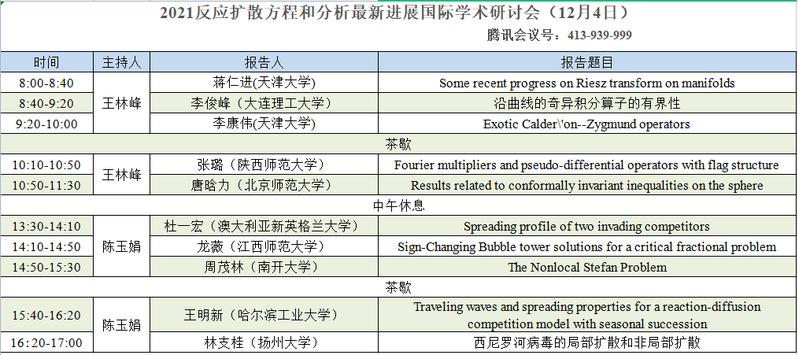 2021反应扩散方程和分析最新进展国际学术研讨会(12月4日)