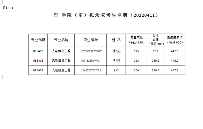 理看球直播下载 2022年硕士研究生(光电信息工程)调剂第二批拟录取名单20220411