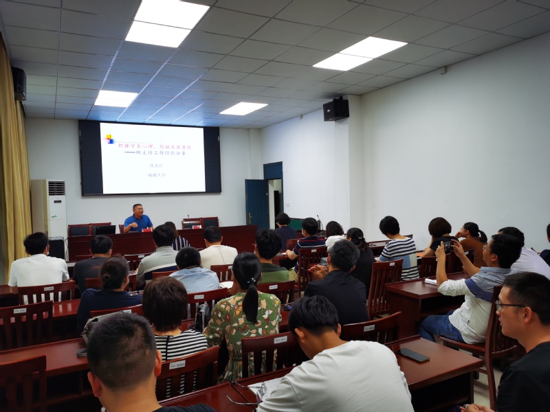 9月14日下午,教育科学看球直播下载 沈永江院长受邀为理看球直播下载 作了《把握学生心理,挖掘发展潜能》的报告,院长陈玉娟主持会议。