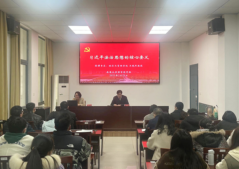 3月23日下午,理看球直播下载 召开党委理论学习中心组(扩大)学习会,邀请经济与管理看球直播下载 王晓燕教授作《“习近平法治思想的核心要义”与“学《宪法》”》专题讲座。