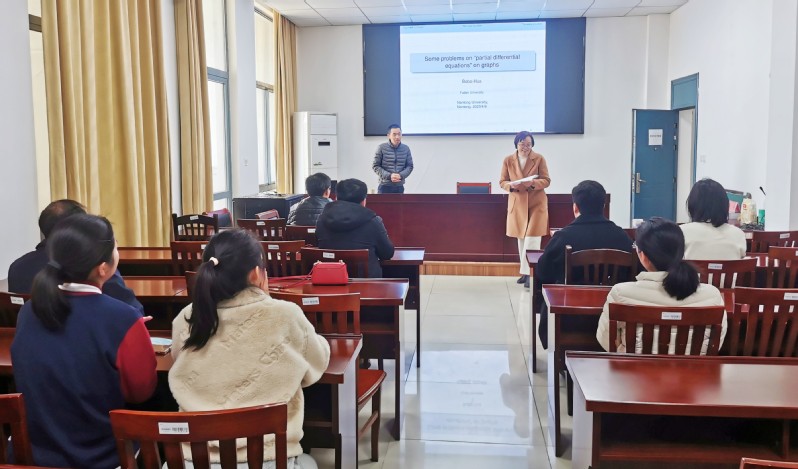 4月8日上午,复旦大学华波波教授做客南通大学理看球直播下载 ,做了题为“图上的一些‘偏微分方程’问题”的学术报告。报告由理看球直播下载 院长陈玉娟主持,理看球直播下载 部分教师和研究生聆听了报告。