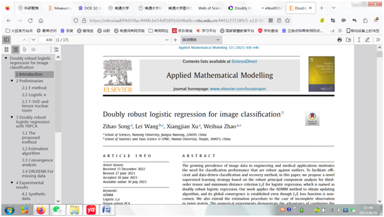 近日,理看球直播下载 赵为华教授指导本科生宋子豪,以南通大学为第一单位,在国际期刊《应用数学模型》(APPLIED MATHEMATICAL MODELLING)上发表题为“基于双鲁棒逻辑回归的图像分类“(Doubly Robust Logistic Regression for Image Classification)”的学术论文。宋子豪为第一作者,赵为华为通讯作者。