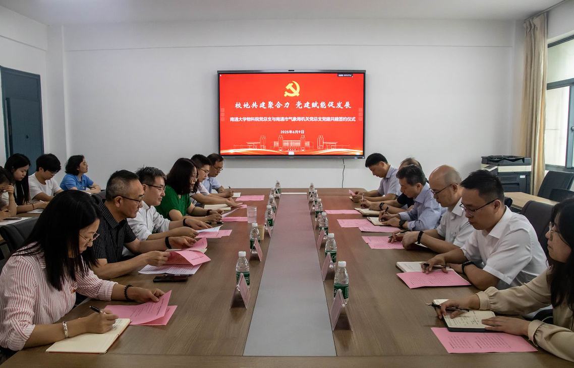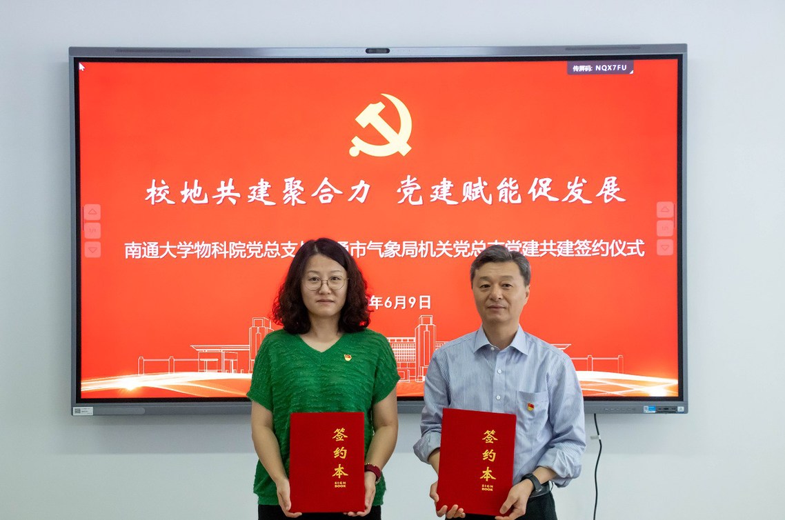 为深入贯彻落实南通市人民政府与南通大学“名城名校” 融合发展战略,深化校地互动交流合作,6月9日,南通大学看球直播下载 党总支与南通市气象局机关党总支举行党建共建签约仪式。校党委常委、副校长徐骏出席签约仪式并讲话。南通市气象局党组书记、局长严迎春和看球直播下载 党总支书记徐凌共同签署了《党建共建协议书》。