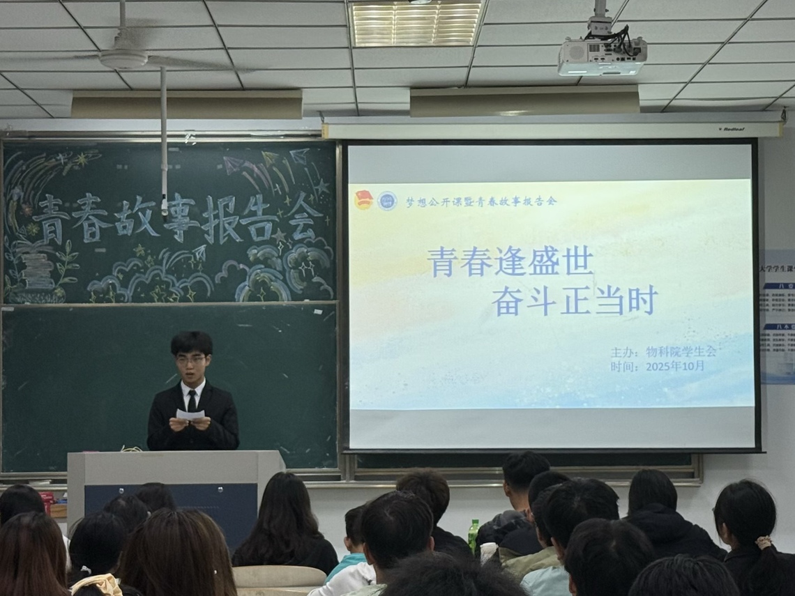 报告会上,三位学长学姐结合自身经历,着重分享了竞赛、研学、学习等方面的内容,为新生们拨开大学生活的迷雾,带来深刻启发与满满正能量。 物师234班许阳围绕学业与兴趣的平衡展开分享,不仅介绍了个人学习规划,还详细讲述了在学科竞赛突破、志愿服务奉献、海外访学交流中的宝贵经历,展现了全面发展的成长路径。物师242班蒋雨欣聚焦今年暑期赴新加坡南洋理工大学研学之旅,从核心学术项目参与、多元校园文化探索,到实践交流成果转化,全方位分享了自己的收获与感悟,为新生打开了国际视野。物师241班朱家慧则聚焦实用学习技能,细致讲解了高效学习技巧与心得,不仅总结出一份贴合新生需求的“避坑指南”,还针对如何缓解学习焦虑、调节负面情绪给出了切实可行的建议。三位学长学姐的分享干货满满,让25级新生们对大学生活有了更清晰的认知,不仅点燃了同学们参与竞赛、研学活动的热情,更坚定了探索个人成长方向的决心,纷纷表示将以学长学姐为榜样,书写属于自己的精彩青春篇章。