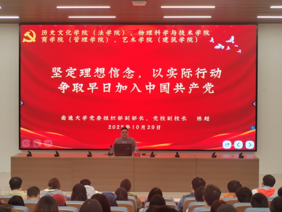 10月29日下午,校党委组织部副部长、党校副校长陈超,应邀为我院第四期党校发展对象暨入党积极分子培训班学员讲授《坚定理想信念,以实际行动争取早日加入中国共产党》主题党课。