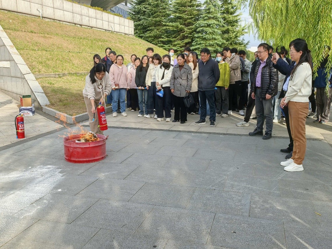 理论学习结束后,实操演练环节迅速拉开帷幕。在消防中心的实操场地,讲解老师现场演示了干粉灭火器的正确使用方法,从“提、拔、握、压”的操作要领到灭火时的站立位置、喷射角度,都进行了手把手的指导。随后,师生分组上前实操,在教官的耐心纠正下,大家逐渐掌握了灭火器的使用技巧,从最初的紧张生疏变得从容熟练。此外,师生还体验了模拟烟感逃生通道,了解了火灾发生时的疏散逃生要点,包括低姿前行、湿毛巾捂鼻等实用技巧,让大家在沉浸式体验中深化了应急逃生认知。参与演练的研究生张同学说:“亲手操作灭火器和体验逃生通道的过程很有意义,以后再遇到类似突发情况,我就知道该怎么正确应对了。”