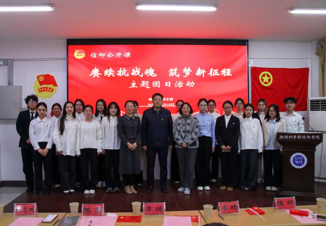 为弘扬伟大抗战精神,深入学习贯彻习近平总书记纪念中国人民抗日战争暨世界反法西斯战争胜利80周年系列重要讲话精神,进一步厚植团员青年的爱国情怀与历史责任感,11月19日,由看球直播下载 团委主办、物师242团支部承办了“赓续抗战魂,筑梦新征程”主题团日活动。校团委副书记(挂职)李博,看球直播下载 党总支副书记、副院长陈丽,看球直播下载 团委书记陈烨出席活动。