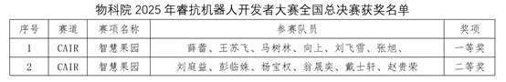 近日,2025年RAICOM睿抗机器人开发者大赛全国总决赛在黄石创业中心创业大厦举办。经过激烈角逐,看球直播下载 学生团队再创佳绩,在“智慧果园”赛道中荣获全国一等奖、二等奖各1项。这是物科师生首次获得该赛道一等奖,再次摘取大赛全国一等奖。