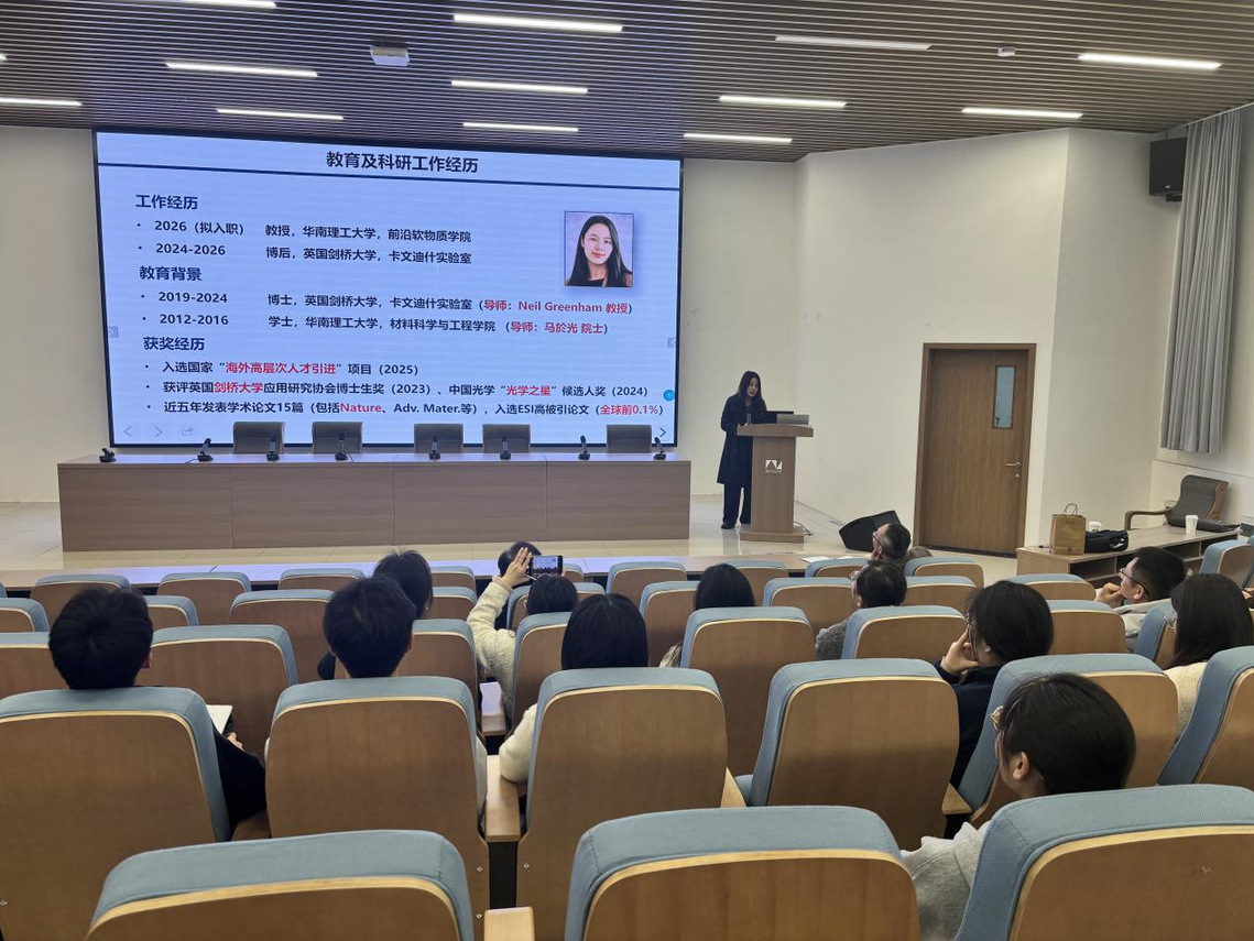 在交流环节,孙雨琦结合自身科研经历,与现场师生围绕钙钛矿发光器件的研究热点、实验方法及未来发展方向等问题进行了深入交流。本次学术报告内容丰富、前沿性强,进一步拓宽了看球直播下载 师生的学术视野,增进了大家对新型发光材料与器件物理研究前沿的了解,激发了师生浓厚的学习兴趣和科研热情。